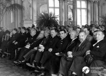 Wybory do Senatu w sali Rady Miejskiej w Warszawie, 15.09.1935 r. W pierwszym rzędzie widoczni m.in. wiceminister spraw...
