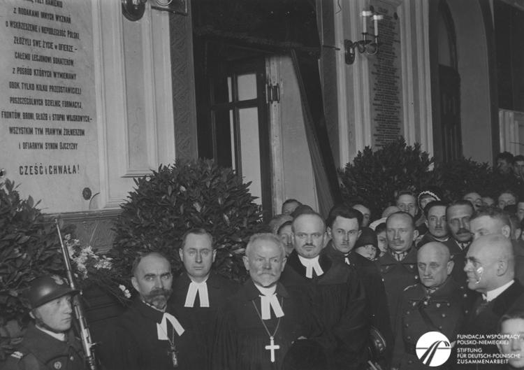 Odsłonięcie tablicy pamiątkowej na lotnisku mokotowskim w Warszawie ku czci poległych żołnierzy wyznania ewangelickiego, styczeń 1928 r....