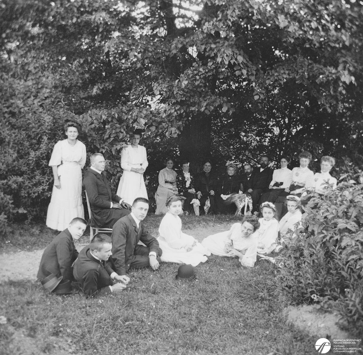 Od lewej NN, NN, ks. Bp. Juliusz Bursche, NN, Amalia Helena Bursche z d.Krusche (1863-1952). Ogród willi „Zacisze” w Wiśle...